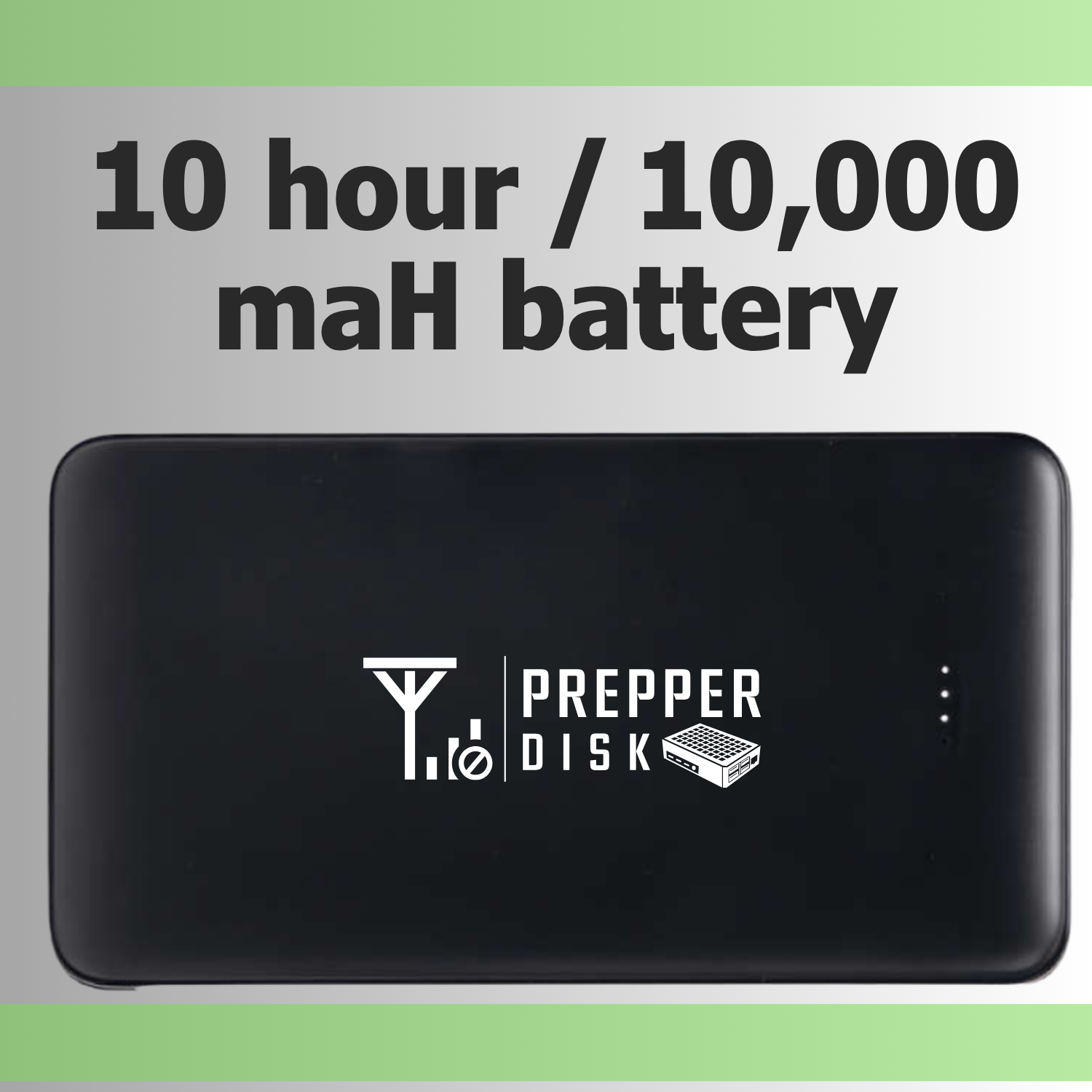 A leading brand (Anker, Energizer, or INUI depending on availability) 10 hour (10,000 maH rechargeable USB-C battery pack) and a Faraday Defense EMP bag, for maximum flexibility and reliability for your Prepper Disk device.